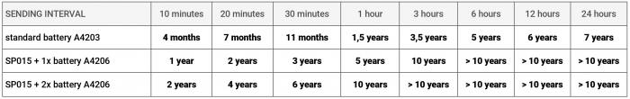 battery holder (SP015) + 1x lithium battery A4206 - 8500mAh 1 year 2 years 3 years 5 years 10 years > 10 years > 10 years > 10 years