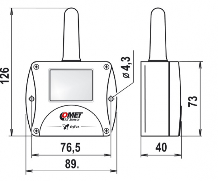 The device measures the temperature and humidity from an external probe on the cable - you can choose it from an optional accessory. The sensor is characterized by a simple and compact design with the possibility of installation directly into the measured space. Model with external cable probe is also suitable for measurements in areas where the risk of poor reception sigfox. The probe can be placed at the measurement point and the device itself where is able to reach a better signal. The probe length must not exceed 30 meters. The probe can be used with a suitable sensor cap even in more demanding conditions.