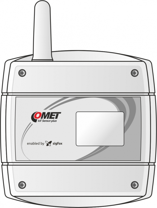 Instrumentet kan övervaka upp till 2 larmgränser för den uppmätta variabeln. Överskridande av dessa gränser indikeras genom att skicka ett nödsms. COMET Cloud vidarebefordrar detta larmmeddelande via e-post till vald användare. Enheten är lämplig för applikationer som tolererar fördröjningen av information levererad av Sigfox (max. 10 min).