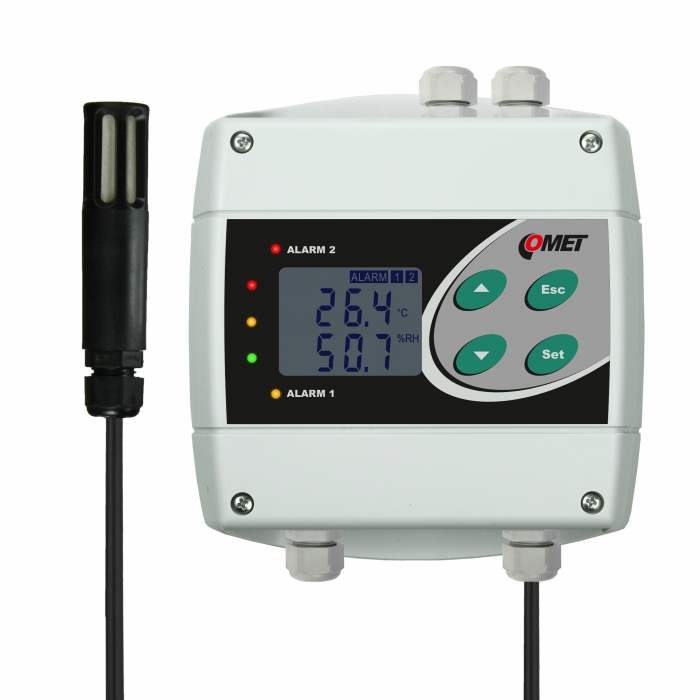 Temperatur- och luftfuktighetsregulatorn med extern givare för temperatur och luftfuktighet med 1 m kabel (2 eller 4 m som option).