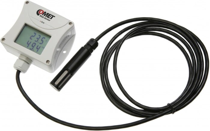 Web Sensor med extern givare för temperatur och luftfuktighet med 1, 2 eller 4 m kabel samt tvåraders display.