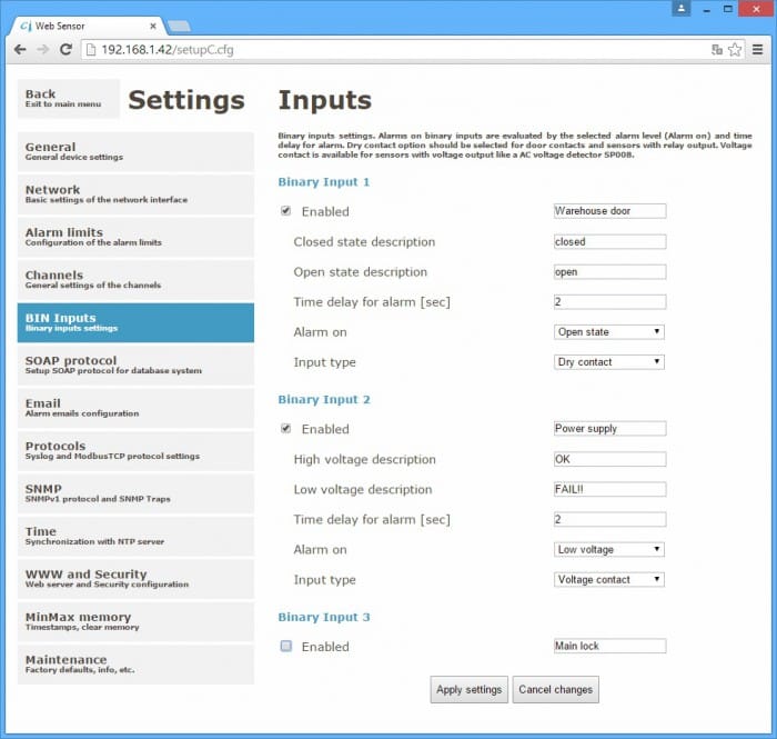 Websensor med PoE - två kanaler med översvämningsdetektor och binära ingångar